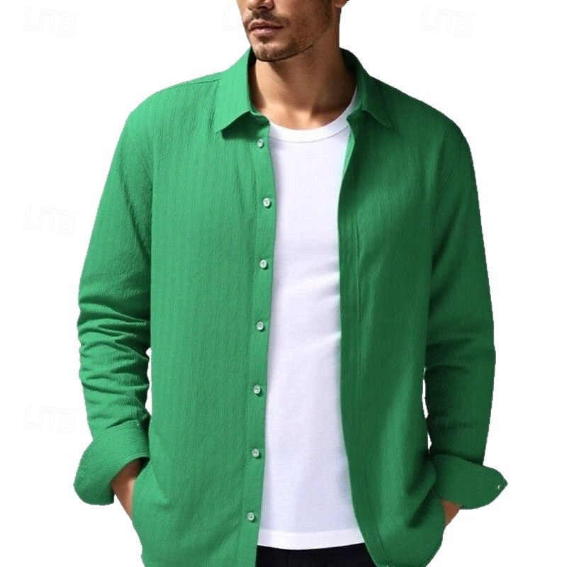 Men's Lightweight Jacket Shirt Jacket Shacket Vacation Daily Breathable Pocket Spring Fall Plain Fashion Classic Lapel Regular Apricot Black White Navy Blue Green Jacket 1