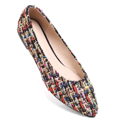 • ✅[ELEGANT DESIGN]: Add some ballerina-inspired style to your outfit with this flat.The stunning ballet flat features a classic slip-on silhouette and pointed-toe that goes with any look.