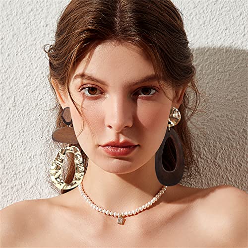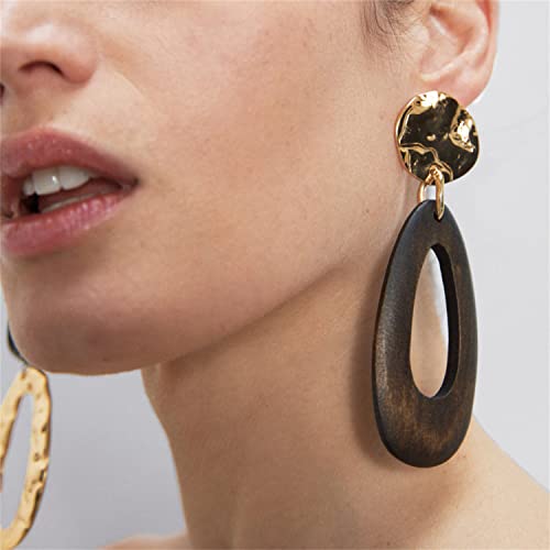 Unique Handmade Bohemian Huge Vintage Nature Wooden Dangle Drop Earrings Ethnic Boho Wood Teardrop Gold Geometry Hook Earring for Women Statement Jewelry Gifts 7