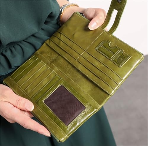 HOT ! Wallet Large Capacity Multiple Card Slots Hidden Buckle Coin Purse Retro Simple Long Wallet(Green)
