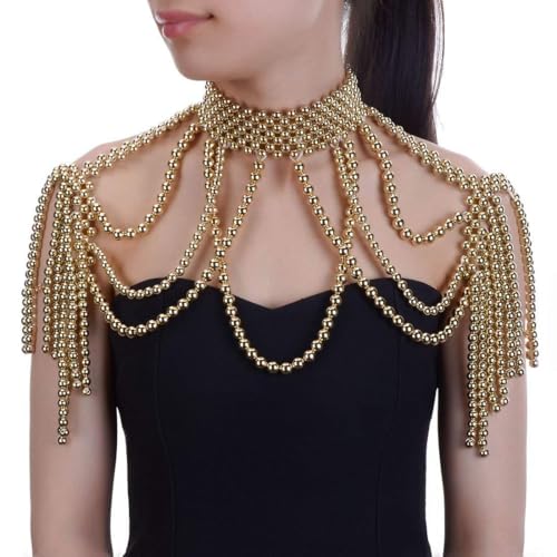 HOT ! Jerollin Simulated Pearl Body Statement Necklace for Women, Fashion Collar Bib Necklaces Fashion Costume Jewelry