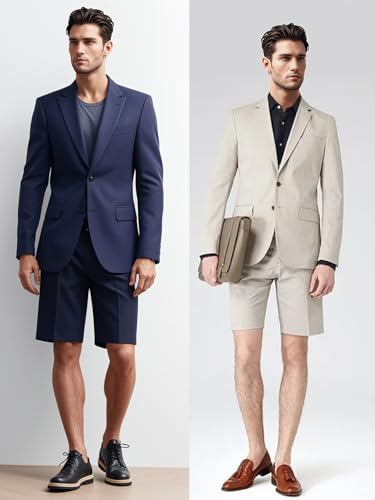 Men's 2 Piece Slim Fit Suit Two Button Blazer and Short Pants Set Summer Beach Wedding Suit Prom Dinner 6