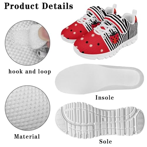 Forchrinse Ladybug Print Toddler Shoes Girls Boys Ladybug Tennis Shoes Comfort Running Athletic for Little/Big Kids Lightweight 4