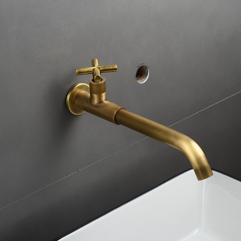 Bathroom Faucet Sink Only Cold Water Basin Taps Wall Mounted, 360 Rotates Single Handle Antique Brass Washroom Vessel Tap Black Chrome Golden White 24