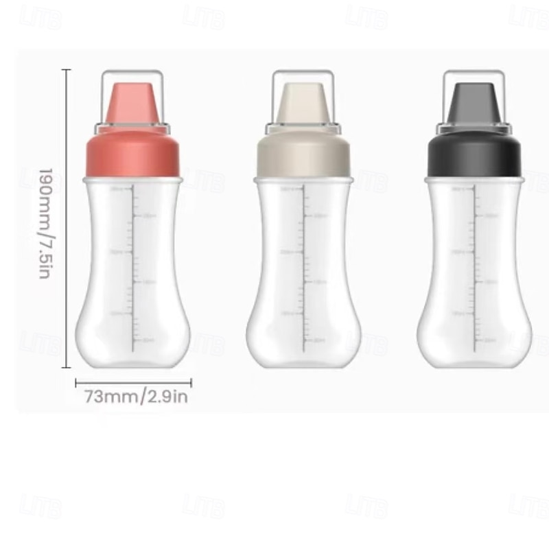 3pcs Measurable Condiment Squeeze Bottle, 350ml Kitchen Sauce Dispenser Bottles with 5 Nozzles for Ketchup, Salad Dressing, and Condiment Portioning 9