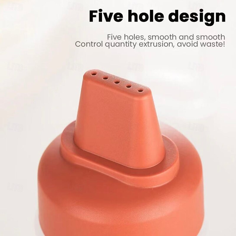 3pcs Measurable Condiment Squeeze Bottle, 350ml Kitchen Sauce Dispenser Bottles with 5 Nozzles for Ketchup, Salad Dressing, and Condiment Portioning 14