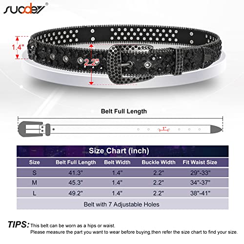 • ❤【How to choose a size】Our rhinestone belts for women men are currently available in three sizes with a belt width of 1.4" (each belt has 7 adjustment holes). This belt can be wear as a hips or waist. Please measure the part you want to wear before buying,then refer the size chart to find your size.