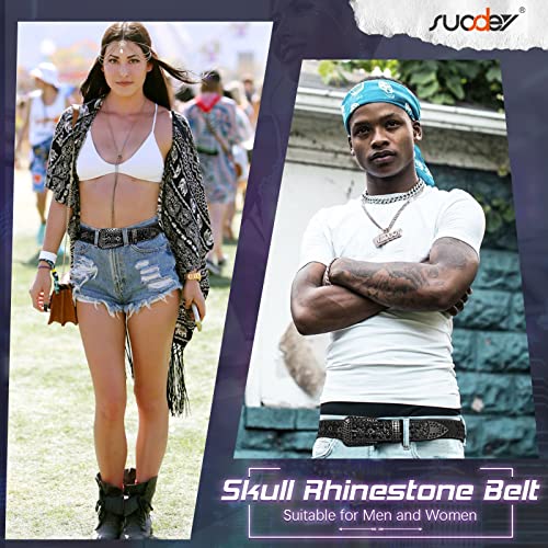 • ❤【High-Quality Material】SUOSDEY rhinestone belt is made of high quality faux leather; the buckle, tail, skul and small beads are made of metal for durability. the rhinestones are hand-set on the metal base, which is not easy to fall off. The back of the buckle is fixed by screws for easy disassembly.