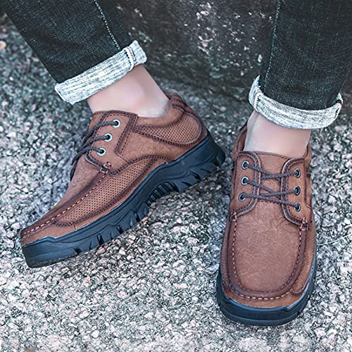 Men's Leather Classic Non-Slip Walking Loafers,Casual Lightweight Breathable Soft Comfort Outdoor Slip On Hiking Sneaker 6