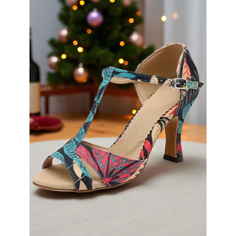 More information about Women's Latin Dance Shoes with Low Heels - Colorful T-Strap Professional Ballroom Sandals for Salsa, Rumba, and Practice Training