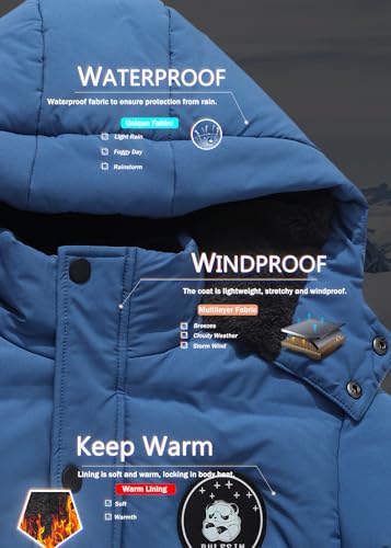 More information about Kids Boy's Waterproof Puffer Cotton Jacket Warm Fleece Lined Down Coat Thick Hooded Winter Coat