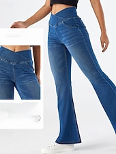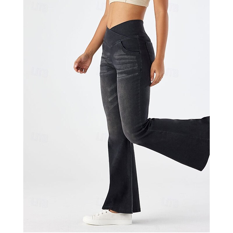 Women's Slacks Leggings Cozy Leggings Streetwear Casual Full Length Natural Plain Elastic Waist Soft Street Daily Wear Weekend Dark-Gray Blue Dark Blue Light Blue Fall Regular Fit 6