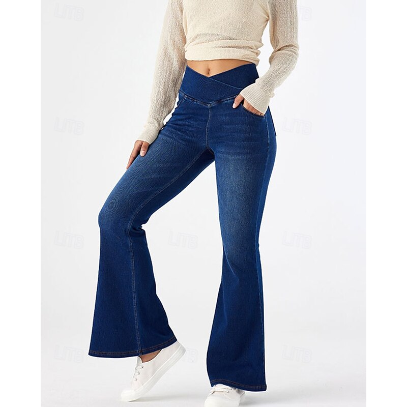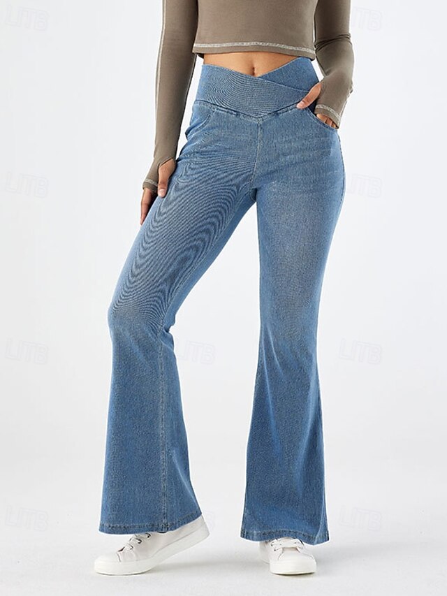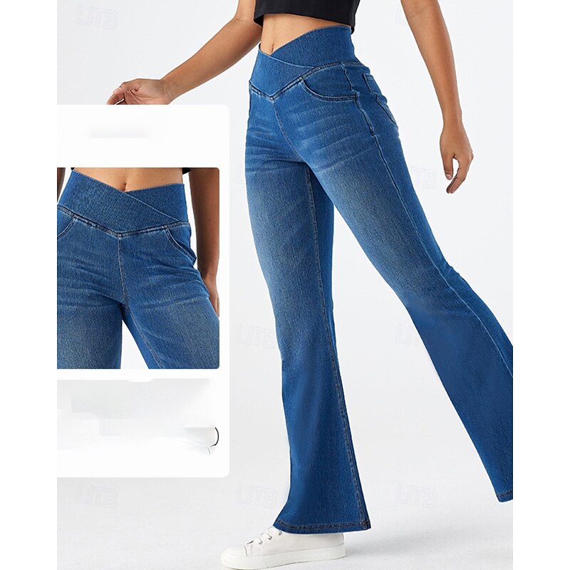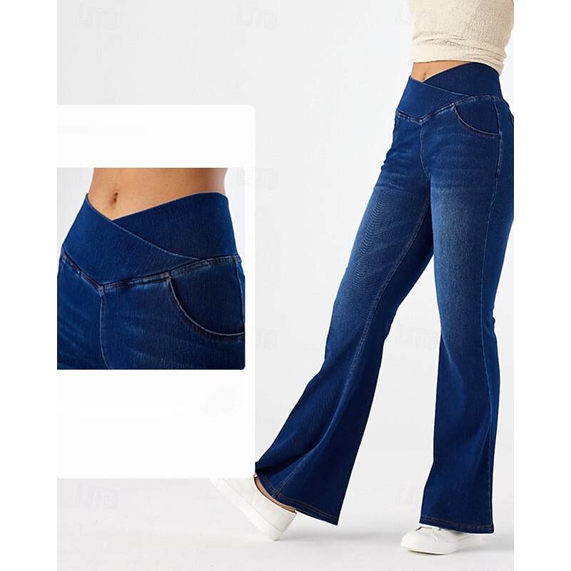 HOT ! Women's Slacks Leggings Cozy Leggings Streetwear Casual Full Length Natural Plain Elastic Waist Soft Street Daily Wear Weekend Dark-Gray Blue Dark Blue Light Blue Fall Regular Fit