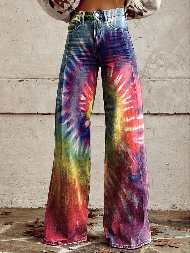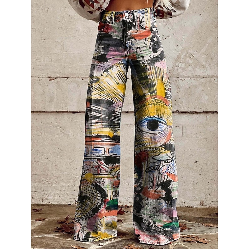 Retro Vintage Boho 1970s Pants Wide Legged Pants Hippie Disco High Waist Floral Faux Jeans Style Fancy Dress Women's Halloween Carnival Music Festival Pride Parade Retro Theme Party Adults Pants 7