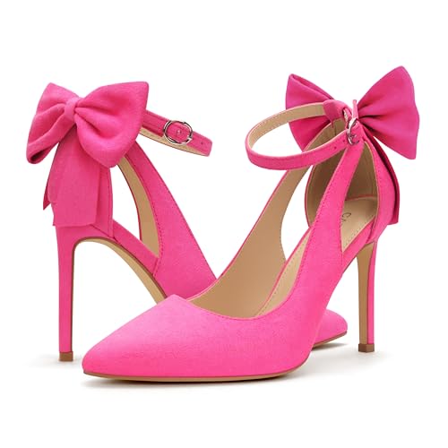 Carcuume Women's High Heels Strappy Pointed Toe Bow Pumps Ankle Strap Stiletto Party Shoes 4