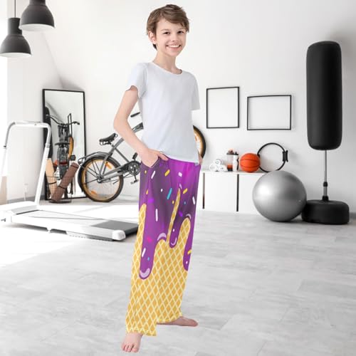 HOT ! Boy's Pants Purple Circle Ice Cream Jogger Pants Elastic Waist Long Bottoms Trousers with Pockets 6-14 Years