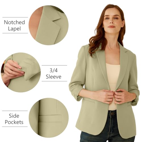 Suit Blazer for Women Open Front Business Work Office Outfit Ruched 3/4 Sleeve Slim Fit Jacket 1