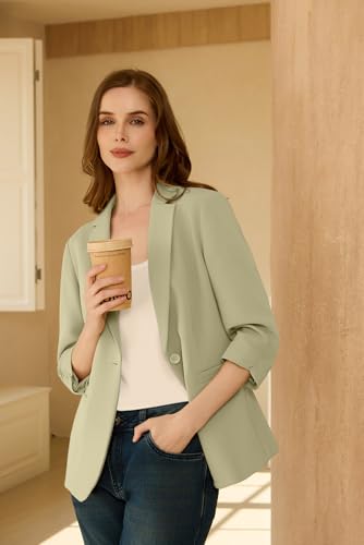 • Features: Business Work Jacket,classic notched lapel, Ruched 3/4 sleeves, full lining, a single-button closure, Open Front, lightweight fabric, create a stylish business casual look