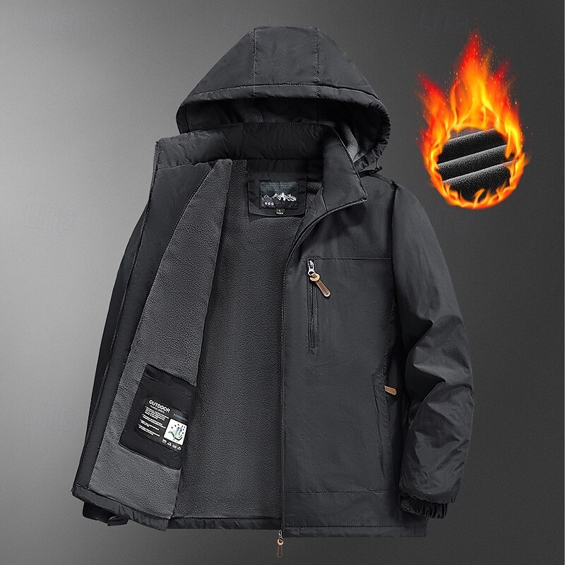 HOT ! Men's Fleece Rain Jacket Winter Jacket Hiking Jacket Windcheater Jacket Outdoor Sports Outdoor Waterproof Windbreaker Pocket Detachable Hood Fall Winter Solid Color Active Sporty Hooded Short Black