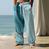 More information about Men's Waves Abstract Marble Trousers Baggy Pants Casual Pants Mid Waist Casual Outdoor Vacation Side Pockets Wide Leg Elastic Drawstring Waist Summer Spring 3D Print Blue