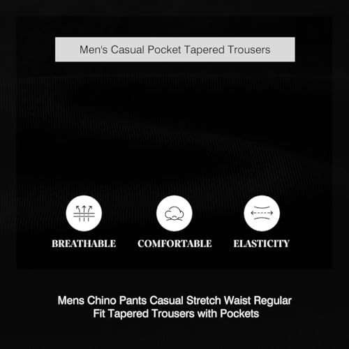 More information about Mens Chino Pants Casual Stretch Waist Regular Fit Tapered Trousers with Pockets