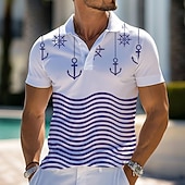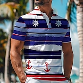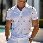 More information about Kentucky Derby Men's Nautical Hawaiian Polo Shirts Golf Shirt Short Sleeve Polo Shirts Collared Shirts Beach Wear Vacation Wear Tropical Wear Party Outfits 3D Print Buttons Spring & Summer White Blue