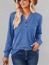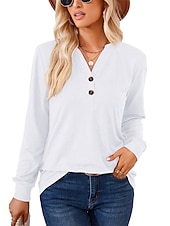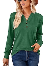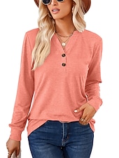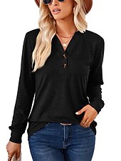 More information about T shirt Tee Henley Shirt Women's Black White Pink Plain Button Casual Fashion V Neck Regular Fit S