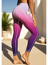More information about Women's Unisex pilates leggings fitness pants Gym Leggings Pockets Stamp Duty Side Pockets Pilates Gym Gym Workout Pants Tights Leggings Graphic Color Gradient Amethyst Sports Activewear Stretchy