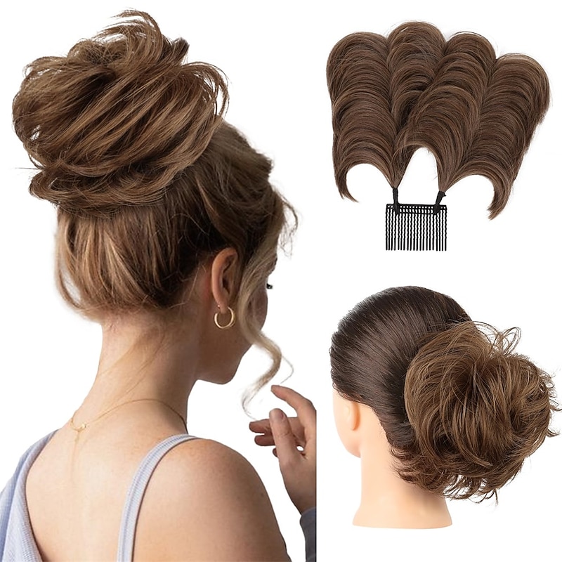 Messy Bun Hair Piece Side Comb Clip in Messy Hair Bun Short Wired Updo Extension for Women Tightness Adjustable Easy Hairpiece 1