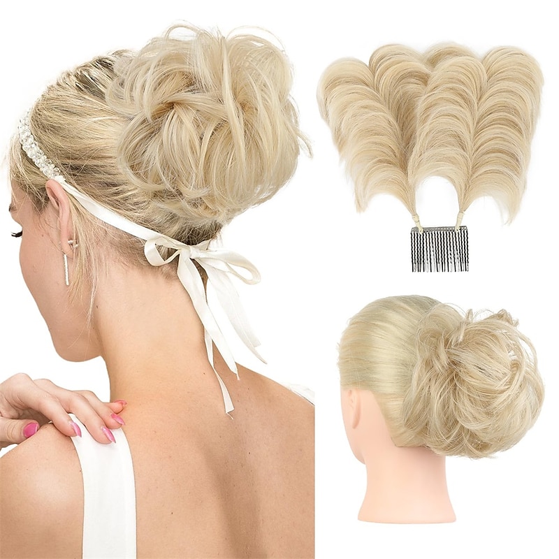 Messy Bun Hair Piece Side Comb Clip in Messy Hair Bun Short Wired Updo Extension for Women Tightness Adjustable Easy Hairpiece 18