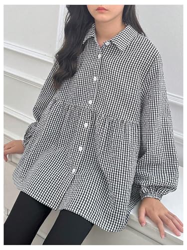 SweatyRocks Girl's Ruffle Peplum Blouses Plaid Long Sleeve Button Down Shirts 4