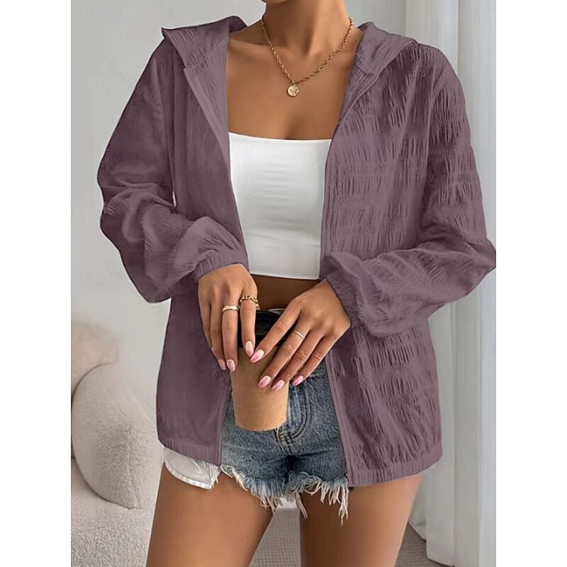 Women's Casual Jacket Breathable Comfortable Zipper Casual Plain Vacation Street Casual Daily Wear Zipper Regular Hooded Regular Fit Long Sleeve Outerwear Black White Purple Summer Spring 10