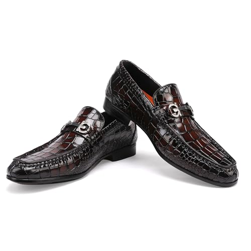 • HIGH QUALITY DRESS SHOES FOR MENS — This penny loafer are made with a premium leather upper, alligators printed and buckle gives a Luxury and Elegant look.