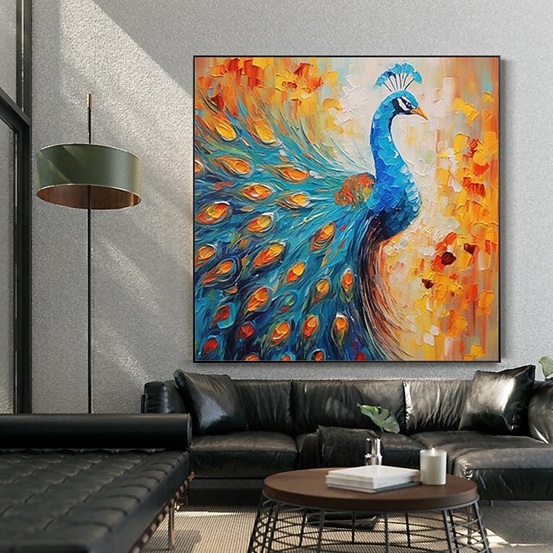 Peacock Canvas Hand painted Elegant Peacock Wall Art Vibrant Bird Handmade Animals Wall Decor Painting On Canvas Peacock Home Decor 7