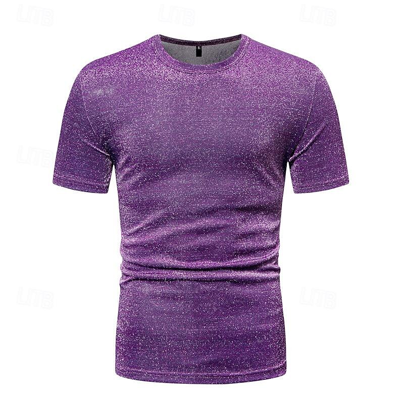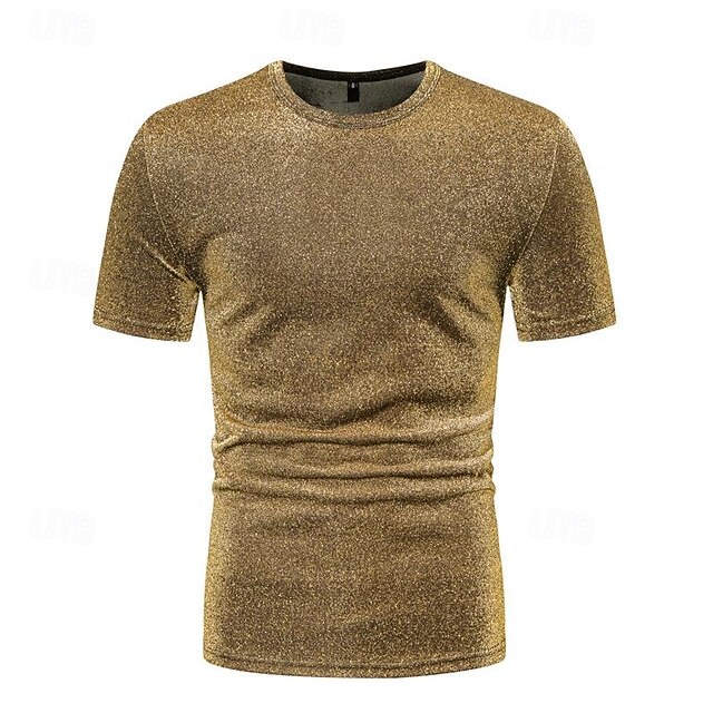 Retro Vintage 1980s Shiny Metallic T-shirt Disco Fancy Dress Men's Halloween Carnival Masquerade Performance Club Pride Parade Adults' T-shirt Spring & Summer 2