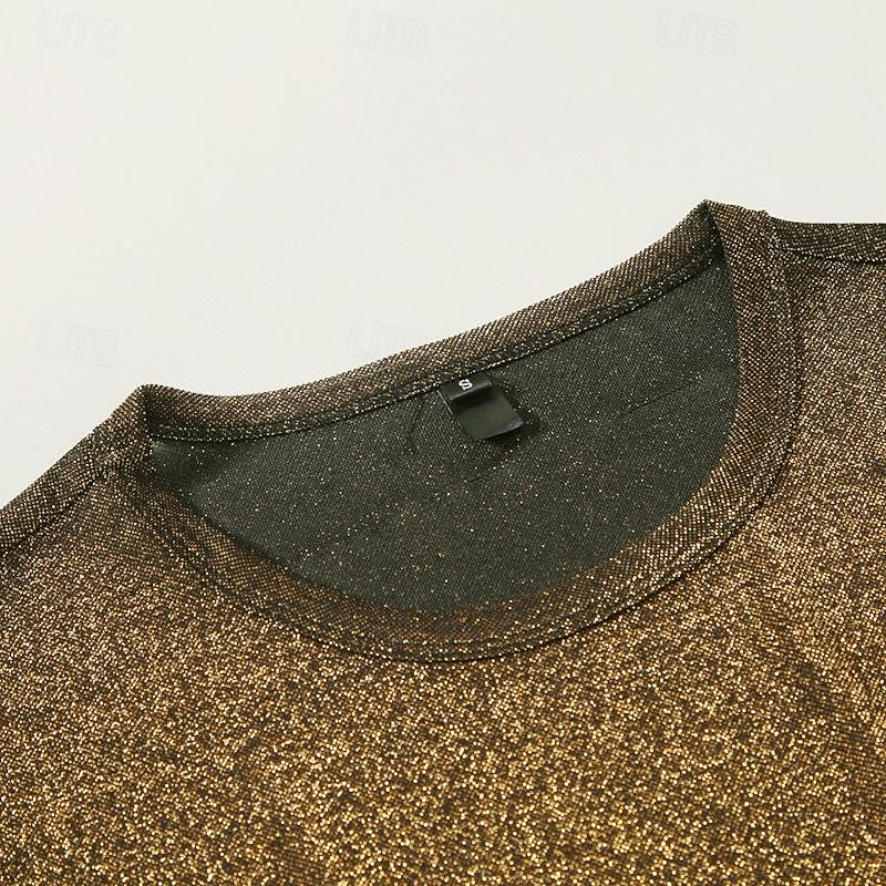 Retro Vintage 1980s Shiny Metallic T-shirt Disco Fancy Dress Men's Halloween Carnival Masquerade Performance Club Pride Parade Adults' T-shirt Spring & Summer 5