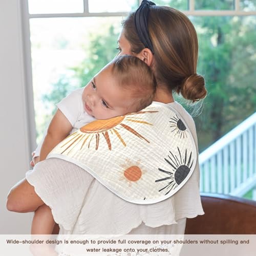 4 Pack Baby Burp Cloths, Soft Absorbent Burping Cloths for Babies, Cotton Milk Spit Up Rags, Large Size for Newborns, Baby Boys and Girls (Boho Sun) 5