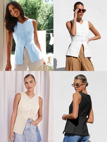 Cicy Bell Womens Button Down Vest Tops Summer Fitted Sleeveless Tank Tops Dressy Casual Business Waistcoat 4