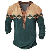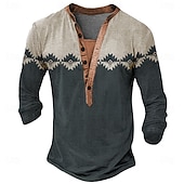 More information about Men's Geometric Tribal T Shirt Henley Shirt Long Sleeve Designer Retro Vintage Bohemian Street Casual Daily Summer Spring Fall Black Green Henley Henley T-Shirt