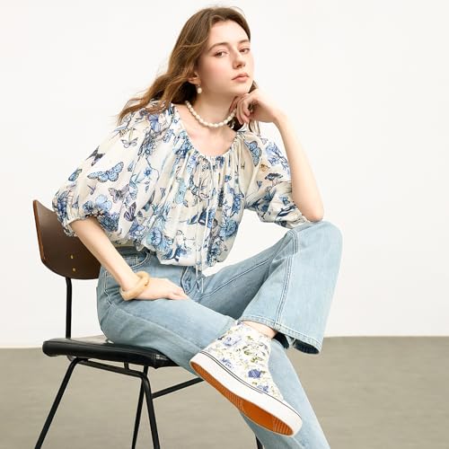 • 【New Design】This womens high-top canvas shoe features a new pattern design, incorporating beautiful flowers from nature into the shoe, making the entire shoe more attractive and fashionable. We hope that this pair of shoes with exquisite patterns will bring you the feeling of "flowers growing on your feet, every step is wonderful beyond words".