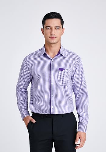 HISDERN Mens Plaid Button Down Shirt Long Sleeve Dress Shirts for Men Casual Wrinkle Free Regular Fit Work Shirt with Pocket 6
