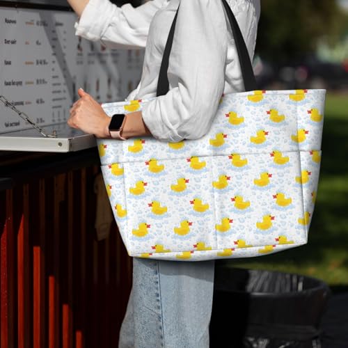 Yellow Rubber Duck Print Beach Pool Bags Tote For Women Ladies Large Gym Tote Carry On Bag For Weekender Travel Waterproof 5