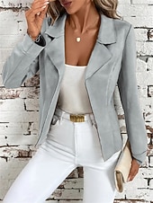 More information about Women's Casual Jacket Outdoor Street Daily Wear Fall Winter Short Coat Regular Fit Breathable Stylish Casual Jacket Long Sleeve Plain Slim Fit White Brown Gray