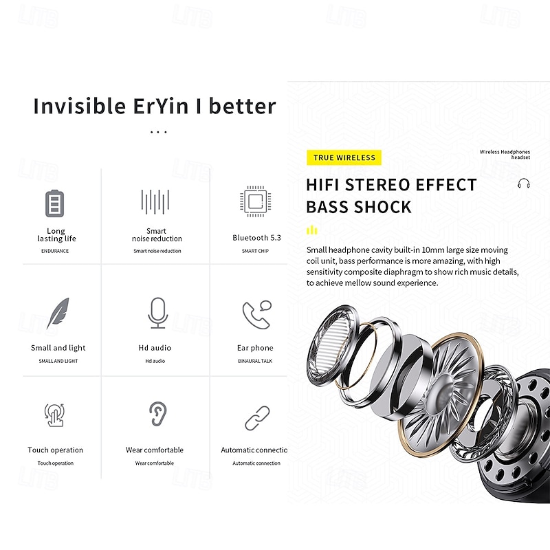 K60 True Wireless Headphones TWS Earbuds In Ear Bluetooth 5.3 Deep Bass for Apple Samsung Huawei Xiaomi MI  Gym Workout Camping / Hiking Outdoor Office Business Car Motorcycle Truck Driving 13