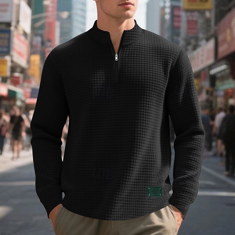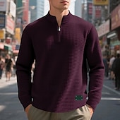 More information about Men's Sweatshirt Quarter Zip Sweatshirt Black White Wine Army Green Khaki Half Zip Plain Jacquard Ribbed Quarter Zip Textured Sports & Outdoor Daily Holiday Polyester Streetwear Basic Casual Spring