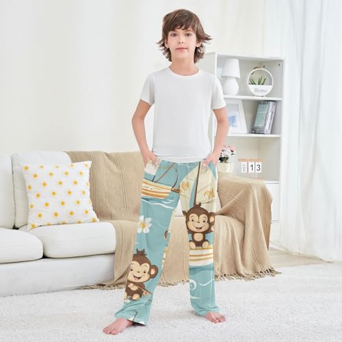 ZZXXB Monkey and Ship Boys Long Pants Soft Trousers Elastic Waist Kids Lounge Bottoms with Pockets S-XL 6