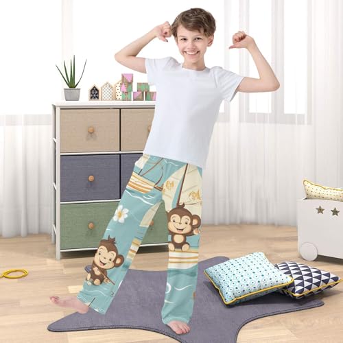ZZXXB Monkey and Ship Boys Long Pants Soft Trousers Elastic Waist Kids Lounge Bottoms with Pockets S-XL 1