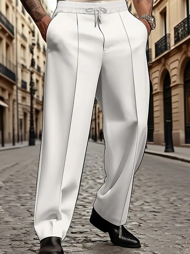 HOT ! Men's Trousers Dress Pants Slacks Casual Pants Drawstring Pocket Elastic Waist Plain Comfort Breathable Full Length Outdoor Party Business Fashion Streetwear Black White Stretchy