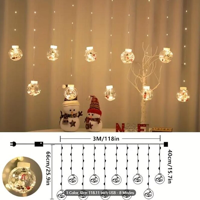 Christmas Wishing Ball String Lights, LED Christmas lamp Snowman Christmas Tree Decorative lamp, Curtain Lights for Home Window Ornaments, Colorful LED, Indoor/Outdoor, 300cm, Waterproof 8