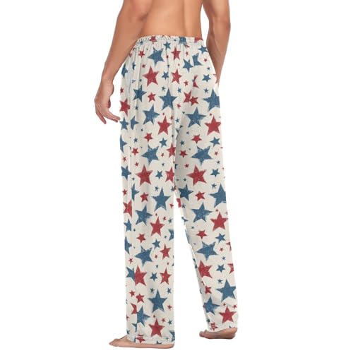 HOT ! Star Pentagram Men’s Pajama Bottoms Straight Leg Lounge Pants with Soft Touch Fabric